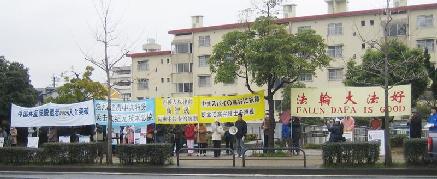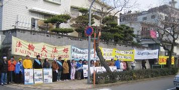 据明慧网报导,2月8日法轮功学员、大.纪.元;技术总监李渊,在美国亚特兰大自己的家中,被持枪闯入的中共特务袭击。鉴于此,广岛、鹿儿岛、熊本和福冈当地的部份法轮功学员聚集到中领馆前,举行揭露中共对民众的迫害和其邪恶本质的抗议活动。 早上9点半,法轮功学员在中领馆前人们容易看到的地方打起横幅和真相看板。李渊受袭击后的照片、中共对法轮功残酷迫害的真相看板引起了许多路人的注目,“大.纪.元;对于李渊事件的严正声明”等横幅正对着中领馆,学员用扩音器朗读声明的声音在空中回响。中领馆寂静无声,没有任何反应。在福冈中领馆前一个小时的抗议活动,在当地警方的理解和配合下顺利進行。法轮功学员把声明投入中领馆的信箱后赶往长崎(Nagasaki)中国领事馆。 下午1点半到达长崎中领馆,几家报社的记者早已到达现场等待采访。学员们在進行绝食活动的同时接受记者的采访,中共在中国大陆和海外对法轮功的残酷迫害使记者们感到震惊。法轮功学员朗读声明的声音,传达到有正义和良知的人们的心中。中领馆有工作人员出来不断的拍照。他们看到的是堂堂正正的法轮功学员面对一个暴力政权时的坚定和平和。整个活动过程中,长崎警方一直表现出平和热心的配合和理解。 长崎中领馆前的抗议活动结束后,学员们又到长崎中华街发法轮功真相资料。一排排陈列着地道的中国食品和服装的商店街,正是讲真相的好地方。学员们向四面八方过往的行人,路两边店铺的店主也发放资料,向几乎所有逛中华街的人们发了真相资料。 一位新学员讲述自己的感想说,“我朗读声明的时候止不住的流泪。声音越念越高,自己都感到惊奇。希望能尽早结束这样的残酷迫害。” |