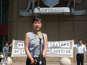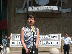 | 【明慧网2006年2月3日】2006年2月1日,悉尼法轮功学员谢焱状告广东省委书记张德江一案首次在澳洲纽省高等法院聆讯,被告张德江缺席,法官在听取了原告律师陈词之后,决定该案继续進行,并确定在6月2日举行第二次法庭聆讯。开庭结束后,悉尼法轮功学员在纽省高等法院前就法轮功学员起诉迫害责任人的法律行动举行了新闻发布会,表示即使江和张等被告不应诉,法轮功学员也将认真为起诉案的庭诉做准备,深入讲清真相,要求对被告进行缺席审判,将江××等迫害元凶和积极执行迫害政策的帮凶绳之以法。 澳洲当地的《悉尼晨锋报》、《澳洲人报》等主流媒体出席了法庭聆讯和新闻发布会,对法轮功学员進行了采访报道。  悉尼法轮功学员谢焱状告广东省委书记张德江 |  澳洲华裔女画家章翠英介绍诉江案進展 |