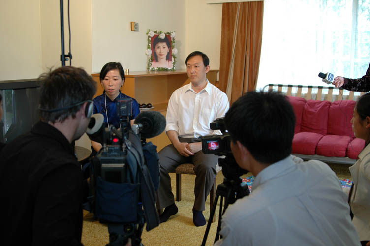 黄国华因坚持修炼法轮功遭中共迫害,他的妻子罗织湘被迫害致死。黄国华逃离大陆,来到泰国。2005年12月,黄国华因为在中使馆前抗议中共恶警暴行,被受到中共施压的泰国警察非法关押在泰国移民局监狱达1个月,通过法轮功学员的多方努力,以及联合国难民署和新西兰政府的帮助,黄国华父女终获自由,由联合国难民署安置在新西兰。黄国华父女六周前来到新西兰,这次是他们首次与媒体见面,揭露中共暴行。   黄国华父女以亲身经历揭露迫害 |   黄颖抱着妈妈追悼会的照片 |