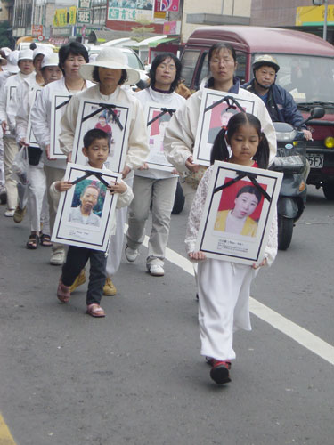 前屏东团管区司令陈昌辉表示,中共隐瞒SARS、禽流感,结果疫情一传播出去全世界都受害,中共劳教所活体摘取器官事件曝光以来,中共沉默三周其实就是要销毁证据,转移里面的法轮功学员,中共现在最怕什么?他最怕人家去调查。 台湾营救受迫害法轮功协会代表侯念祖指出,过去七年来,中共对这些最善良的修炼人施以最残酷的迫害。法轮功学员对任何人都是善的,一再给中共了解法轮功的机会,然而中共竟以国家力量迫害,甚至做出贩卖法轮功学员器官的恶行,因此唯有让人们彻底了解共产党是什么,解体中共,才能停止迫害。而《·九·评*共产党》的出版,让世人知道共产党是什么。 记者会现场立法委员魏明谷表示,中共是专制独裁政权,控制整个国家媒体,并渗透国际上很多媒体,因此媒体较少报导法轮功学员受迫害的情况,有的人则表现冷漠、不关心,在这样的情况下,法轮功学员勇敢站出来,和全世界最大的政权抗争,令人敬佩。 照相馆老板林先生表示,看了游行车队的照片,感到很沉痛,只要有知识、有人性的人都会有感觉,他对中共迫害宗教、人权非常反感,一个人的力量有限,也不能做什么,可是只要全世界都站出来,力量就会很大。 协助交通指挥的彰化市后备宪兵黄先生,一直拍摄游行队伍,他说法轮功不简单,举办活动让更多人了解,其实中共的本质就是赤化全世界,中国老百姓是无辜的,要让专制瓦解掉。   小修炼者手持受迫害致死学员遗照 |   人们停下来看真相资料了解中共盗取器官的暴行 |