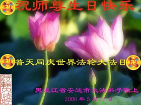 2006、5、4 黑龙江省牡丹江市大法弟子恭祝慈悲伟大的师尊生日快乐