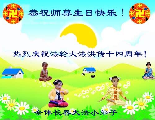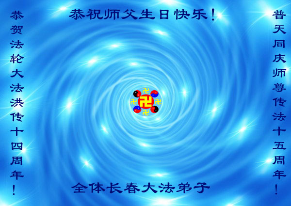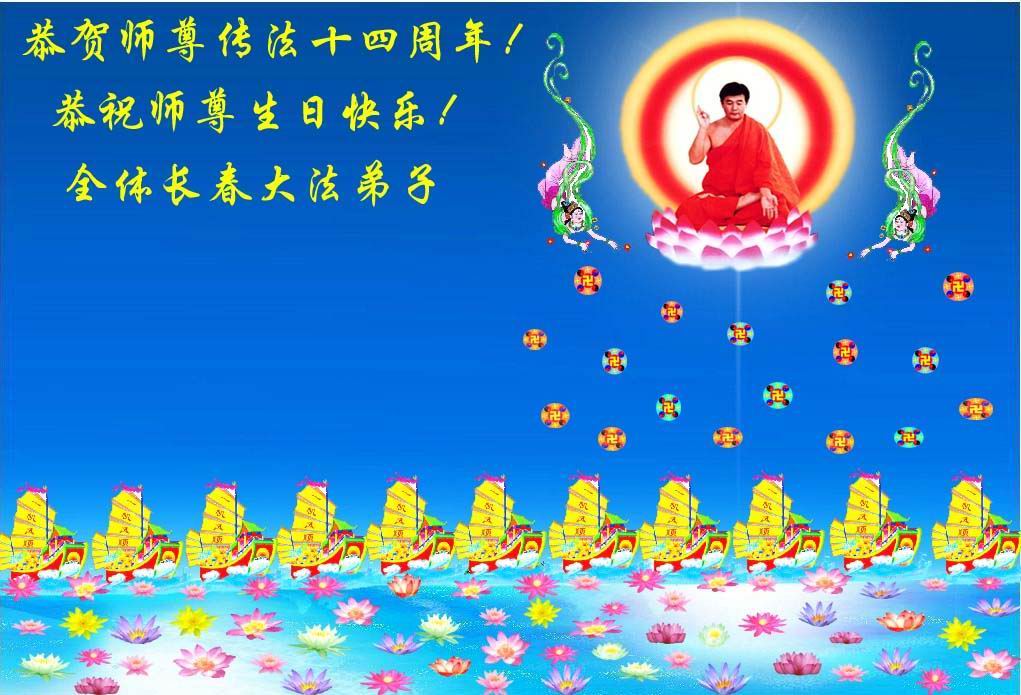 全体长春大法小弟子恭祝师尊生日快乐!热烈庆祝法轮大法洪传十四周年!