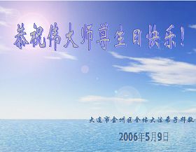 2006年5月4日 盘锦迷途知返的大法弟子祝慈悲洪大的伟大无比的师父生日快乐
