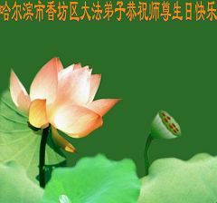 慈悲伟大的师尊,在您生日来临之际,我们每一位大法弟子祝愿我们慈悲伟大的师尊生日快乐,决不辜负师尊的慈悲苦度,一定理智、智慧的做好大法弟子应该做的三件事,让师尊少一些操劳。 大法弟子30人(签名略) 哈尔滨市平房区全体大法弟子恭祝伟大师尊生日快乐