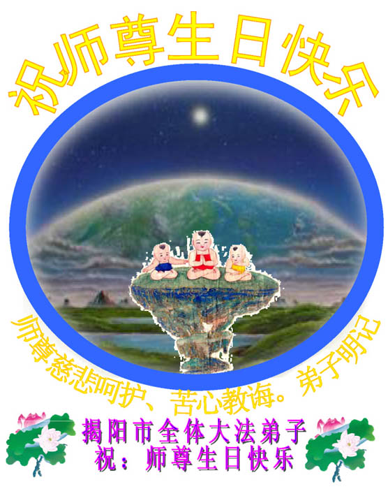 揭阳市全体大法弟子恭祝师尊生日快乐!