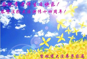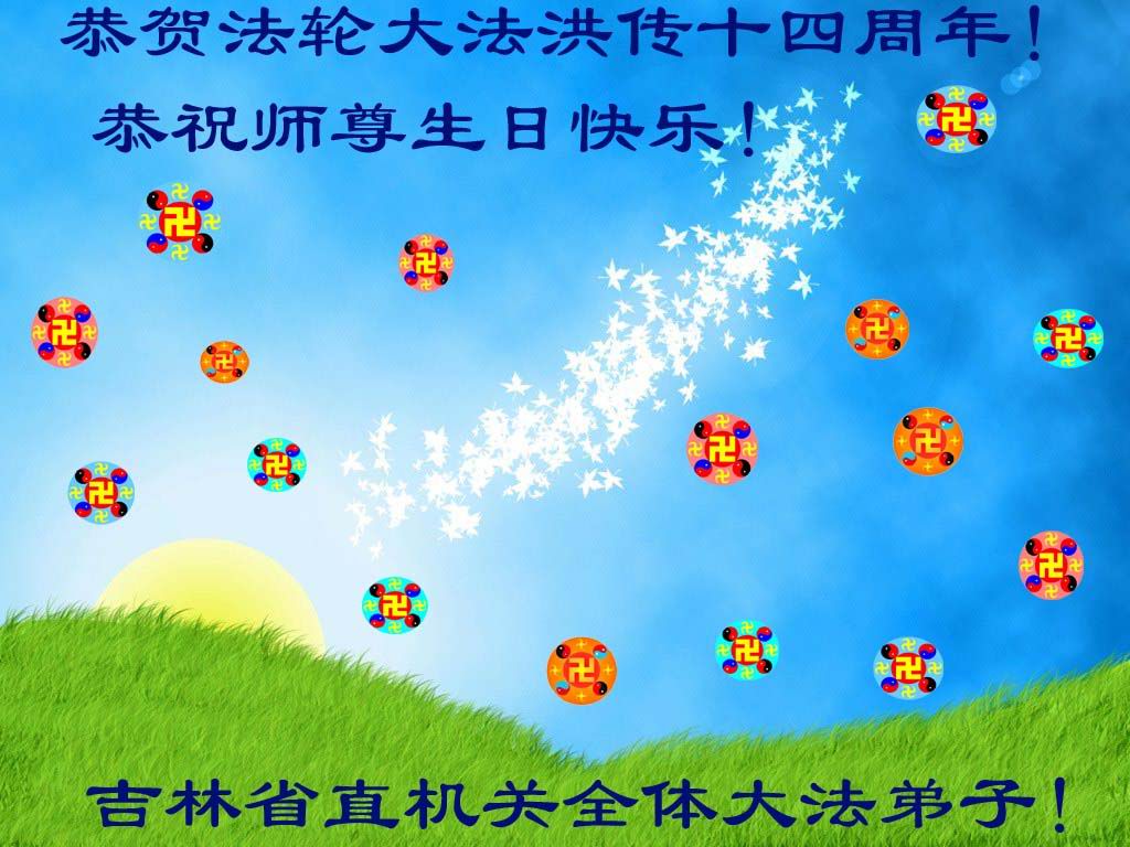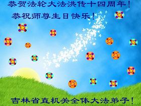 吉林省直机关全体大法弟子恭贺法轮大法洪传十四周年!敬祝师尊生日快乐!