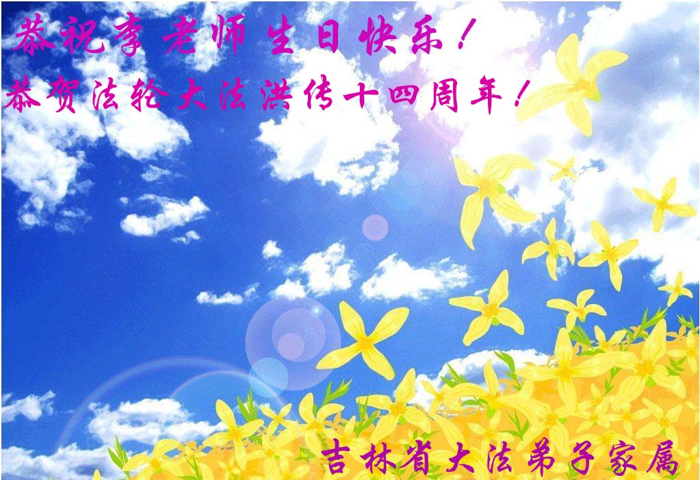 吉林省大法弟子家属恭祝李老师生日快乐!恭贺法轮大法洪传十四周年!