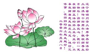 盘锦大法弟子一定紧跟师尊的正法進程,做好应该做好的三件事。 2006年5月4日(农历4月初7日) 辽宁盘锦辽河油田全体大法弟子祝慈悲伟大的师尊生日快乐