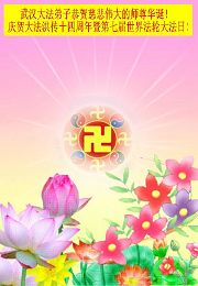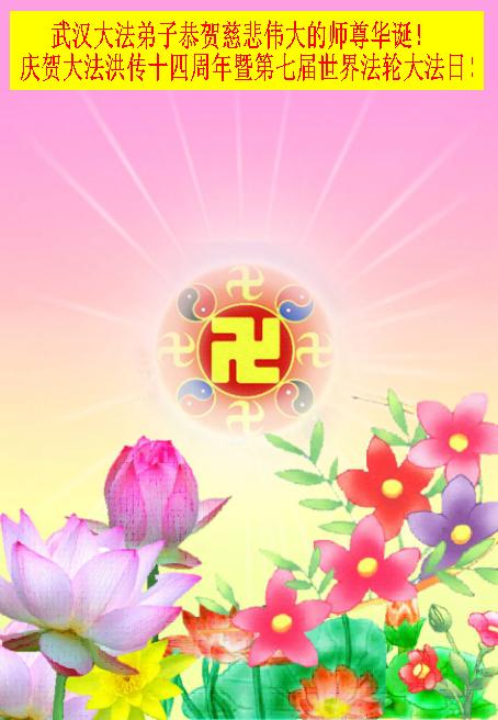 武汉大法弟子恭贺慈悲伟大的师尊华诞
