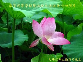 师尊为救度众生操碎了心,在师尊生日来临之际,弟子们仅以一束鲜花略表寸心。请师尊放心,弟子们一定谨遵师命,走好剩下的路,不负师尊苦度。 大庆采油三厂大法弟子 大陆辽阳大法弟子恭贺师尊华诞暨法轮大法洪传十四周年