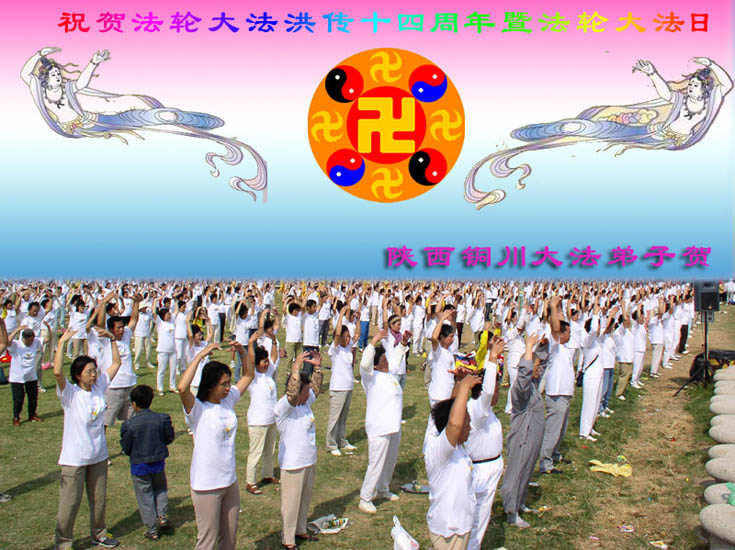 陕西渭南地区大法弟子恭贺师尊华诞暨法轮大法洪传十四周年