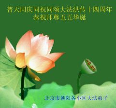 在5月13日世界法轮大法日来临之际,我们大庆市肇源县全体大法弟子双手合十:恭祝慈悲伟大的师父生日快乐!跟上师父的正法進程,不辜负师父的慈悲苦度。 2006年5月9日 北京朝阳区双井大法弟子向师父问好!