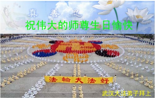 武汉大法弟子恭祝慈悲伟大的师尊生日快乐!