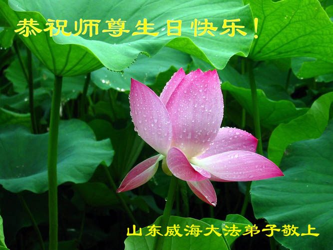 威海全体大法弟子恭祝师尊五十五华诞,同贺第七届世界法轮大法日!