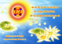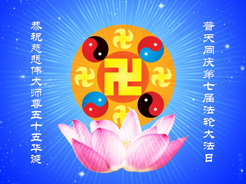 在世界法轮大法日和师父生日即将到来之际。哈尔滨全体大法弟子祝师父生日快乐!谢谢师尊的慈悲苦度,我们一定会做好三件事,救度更多的众生。 北京丰台区大法弟子恭祝慈悲伟大的师尊生日快乐!