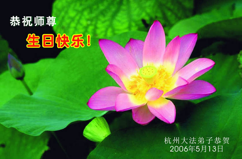请师尊放心,弟子一定勇猛精進,做好三件事! 济南大法弟子 合十 二零零六年五月十二日 杭州大法弟子恭祝师父生日快乐