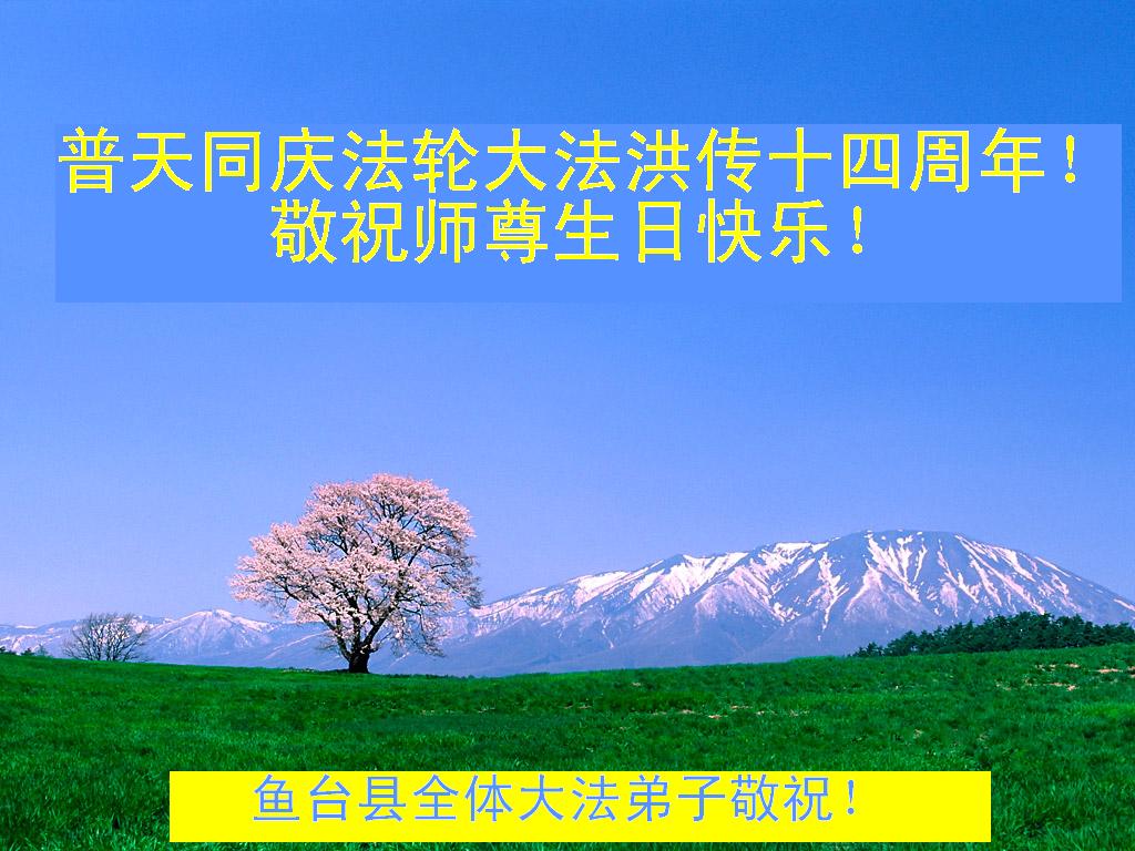 普天同庆法轮大法洪传世界十四周年!祝贺第七届世界法轮大法日! 茌平县全体大法弟子恭祝师尊生日快乐
