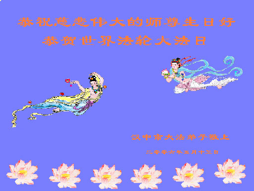中国大陆教育系统大法弟子恭祝师尊五十五华诞暨庆贺法轮大法洪传十四周年
