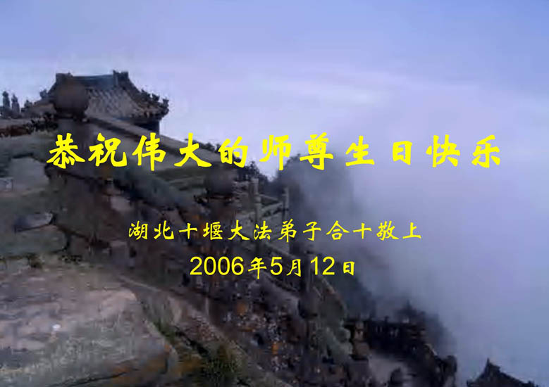 恭祝慈悲伟大的师父生日快乐! 弟子一定做好三件事,不辜负众生的期望,让师父放心! 大陆大法弟子 2006年5月12日 永州大法弟子恭祝慈悲伟大的师尊生日快乐!