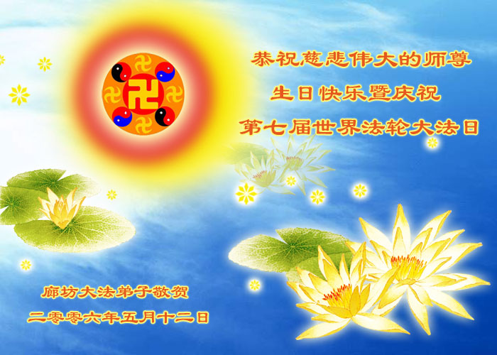 廊坊大法弟子恭祝慈悲伟大的师尊生日快乐暨庆祝第7届世界法轮大法日!