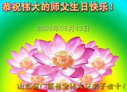 广东大法弟子 06年5月12日 山东省广饶县全体大法弟子恭祝伟大的师父生日快乐!