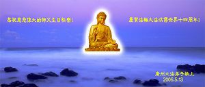 我们一定做好师尊要求的三件事,救度众生,稳健的走在回家的路上。 上海大法弟子 2006年5月11日 北京中关村大法弟子恭祝师父生日快乐!