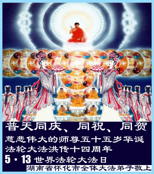 普天同庆:5•13 世界法轮大法日。 恭祝师尊生日快乐!师父您辛苦了! 恭祝慈悲伟大的师尊华诞即法轮大法洪传14周年!