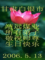 【明慧网二零零六年五月十四日】 甘肃白银市靖远煤业大法弟子敬祝师尊生日快乐