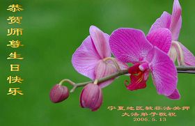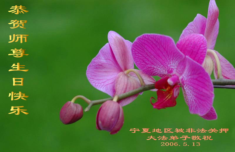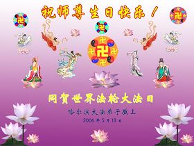 恭祝伟大慈悲的师父生日快乐! 山东流离失所大法弟子合十! 2006年5月12日 长春地区大法弟子向师父问好:祝师尊生日快乐!