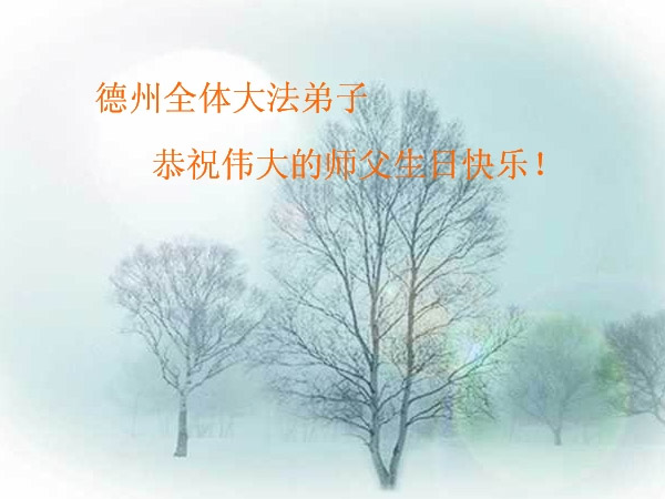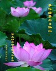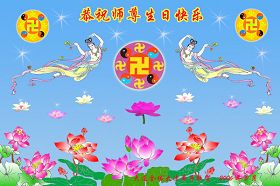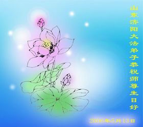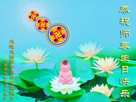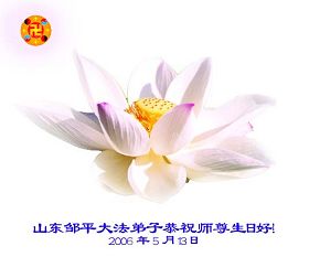 95年4月,我第一次看到《中国法轮功》,腹中的法轮剧烈旋转,其后神奇的身体改变使我走進大法,走近佛道神。一次又一次的点化,使我不断精進。无以用语言表达,唯有走好师父安排的路。 济南大法弟子敬祝师父生日快乐!