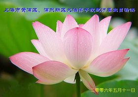 转瞬十四载 弹指一挥间 真善忍大法 恩泽苍宇间 洗净满身业 涤荡污浊心 何以报师恩 唯有更精進 唐山大法弟子叩拜师尊 2006年5月12日 上海浦东大法弟子恭祝伟大的师尊生日快乐