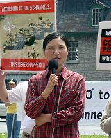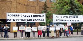 在集会上,多伦多的电脑工程师、法轮功学员金瑾公开讲述了自己和家人在中国的经历。99年7月20日,中共迫害法轮功开始以后,金瑾和家人就被强制送到了“洗脑班”,被强制“转化”。在洗脑班期间,中共掌控的中央电视台找到金瑾所在单位的党委书记,施加压力,要求采访金瑾和她的家人。在不配合就失去工作和学业的威逼下,金瑾和家人被迫违心表态,说了对法轮功信仰不利的话。 金瑾后来得知,中央电视台的这一“访谈节目”不但在全国播放,还被输出到海外。 金瑾说,“这个节目最后说,‘这家人从此(指在放弃信仰后)过上了幸福的生活……’但是事实上,在之后的两年里,我的丈夫为法轮功受迫害而上访,被非法拘留15天,被开除了公职;我因为不放弃信仰,在怀孕的情况下,也被解除了劳动合同。我弟弟因坚持信仰被非法判劳教一年半。每到逢年过节的时候,我们一家的活动都受到严密的监控。难道这就是他们所说的‘幸福生活’吗?” 金瑾说,现在央视人员说我当初接受采访是“自愿的”,其实自愿与否只有我自己最清楚。我想问他们,在洗脑、胁迫和压力下讲出的话是自愿的,还是在自由的土地上,讲出自己的心声是自愿的? 仇恨宣传受到加拿大民众抵制 反对九家中共电视台进入加拿大的民间团体之前曾向CRTC提供了24盘中共利用中央电视台煽动仇恨的录像作为证据。其中一盘在加拿大播出后,播出电视台曾受到加拿大广播标准委员会的制裁。 据明慧报导,加拿大广播管理委员会针对加拿大中文电视台“城市电视”转播中央电视台造谣新闻被1282人联名投诉事件,于2002年8月16日公布了其裁决,判定加拿大中文城市电视在2001年12月16日转播中国中央电视台新闻节目“傅怡彬谋杀案”之举违反了加拿大广播协会的“职业道德守则”和“有关暴力守则”、以及广播电视新闻主编协会的“(新闻业)职业道德守则”中的四条规定。裁决责令该电视台在7日内两次播出本裁决。 该裁决称,“本小组认为,一方面,在这个新闻报告中提供的有关法轮功的内容构成了不公正评论;另一方面,对这个暴力录像片段的重复播放是极其过份的。” 抵制喉舌电视台不是新闻自由问题 是责任问题 央视(属下CITVC)联合罗渣士通讯公司今年5月26日致信CRTC,反驳“反中共渗透联盟”提出的反对意见,并攻击联盟和个别团体,但无法回应对九家电视台煽动仇恨的指控,也无法否认央视所制作录像的仇恨性质。 来自蒙特利尔的法轮功学员竹学叶博士接受采访时说,中共的媒体确切的说并不是真正意义的媒体。连江泽民自己在接受海外媒体采访时都说“媒体是党的喉舌”。中国民众言论和信仰自由被践踏,就是因为中共在使用两个手段——暴力和谎言。而中共控制的媒体正是在推出这种谎言。 竹博士提到日前人大颁布的“突发事件应对法草案”说,在中国,目前规定新闻媒体不能擅自报道突发事件的相关信息,否则,罚款最高达十万。他说,“像当初中共媒体对SAS的报道一样。如果SAS再次爆发,我想由于新闻管制,这九家电视台不会有一家敢于报道真实情况,而西方媒体又无法独立进入中国进行报道。所以,“中共喉舌”的报道就会严重误导观众,造成的损失也将是无法估量的。因此,拒绝这九家电视台不是新闻自由的问题,而是责任的问题。”