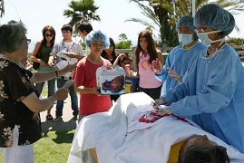 【明慧网2006年7月17日】美国洛杉矶法轮功学员2006年7月15日于圣塔摩尼卡海边向公众揭露真相,吁制止中共罪行,结束持续7年的中共对法轮功的迫害。当天以新闻发布会、模拟活体器官摘取、反酷刑迫害图片展、标语、文宣等方式说明中共之所作所为。来往民众驻足聆听、研读、观看,继之震惊、摇头、叹息、愤怒、落泪,纷纷签名支持制止中共罪行。集会会场  民众观看揭露中共活体摘取法轮功学员器官的模拟演示 |   民众听学员讲解真相 | 民众观看迫害真相展板及绘画作品民众签名谴责中共迫害法轮功日前,加拿大前亚太司长乔高(David Kilgour)和国际著名人权律师麦塔斯(David Mates)二人组成独立调查组,经过2个月的调查,在2006年7月6日向加拿大媒体公开了一份报告,证实了法轮功学员自今年3月8日以来一直在不断揭露的中共活体摘取法轮功学员器官暴行之真实性,洛杉矶法轮功学员15日在游人如织的圣塔摩尼卡海边揭露中共迫害。 * 呼吁制止中共非人性之迫害 李有甫洛杉矶法轮大法学会代表李有甫在新闻发布会上表示,自99年7月20日开始,中共以「名誉上搞臭、经济上截断、肉体上消灭」的群体灭绝政策,对法轮功的血腥迫害已经长达7年,使用暴力欺骗全国人民,以实行邪恶迫害。中共恶行,在法轮功学员向全世界讲清真相中,已逐渐被披露,最近由其内部传出对法轮功修炼者惨绝人寰的活体摘取器官更是全人类无法容忍,值此,大家正面临一个「善恶与是非」的选择,呼吁国际制止中共非人性之迫害! 洛杉矶退出共产党服务中心代表Helen表示,中共政府是一个令人恐惧的政府,中共邪*党-从它成立起就是中华民族灾难的开始。原先众多对其尚有幻想希望的人们,面对中共活体摘取法轮功学员器官的行为,清醒了,他们决然退出了中共邪*党-及其相关的团、队组织。那些对中共仍抱有幻想者,最好通读《·九·评*共产党》,彻底了解中共的真面目,不要再与魔共舞。只有解体中共才是结束一切灾难的根本,要解体中共,唯有退!党!、退*团-、退*队-,目前不断的退!党!潮的推进,正是中共走向解体的过程。 * 呼吁布什正视「中共活体摘取器官独立调查报告」