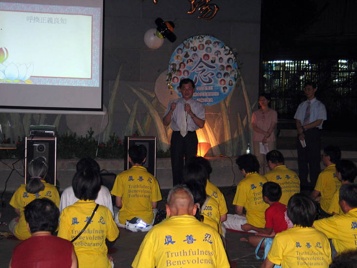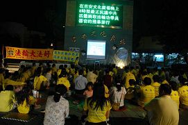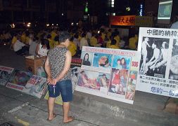 【明慧网2006年7月22日】7月20日晚,台湾花莲法轮功学员在吉安文化广场举办烛光追悼会,抗议中共对法轮功的群体灭绝迫害。  抗议中共活摘法轮功学员器官的暴行 |  现场民众详看迫害真相展板 |