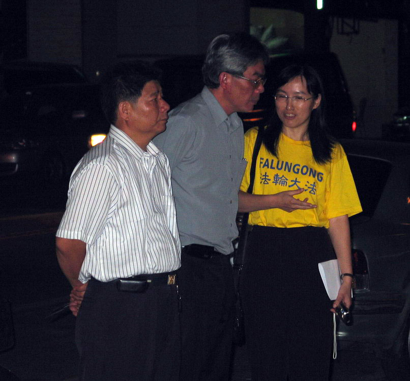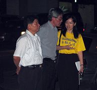 前国大代表王廷升参加烛光追悼会 |  向吉安乡长田智宣(中)与乡代表苏文将(左)讲中共迫害真相 |