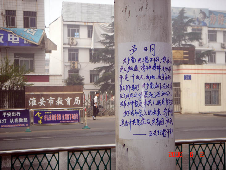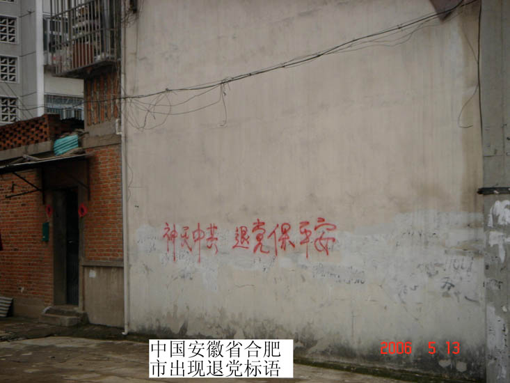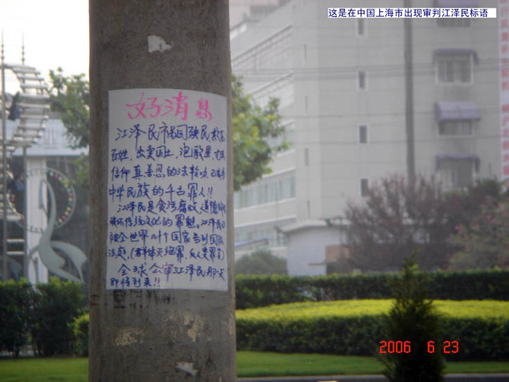 江苏淮安出现的退!党!声明 |   上海出现的审判江泽民标语 |