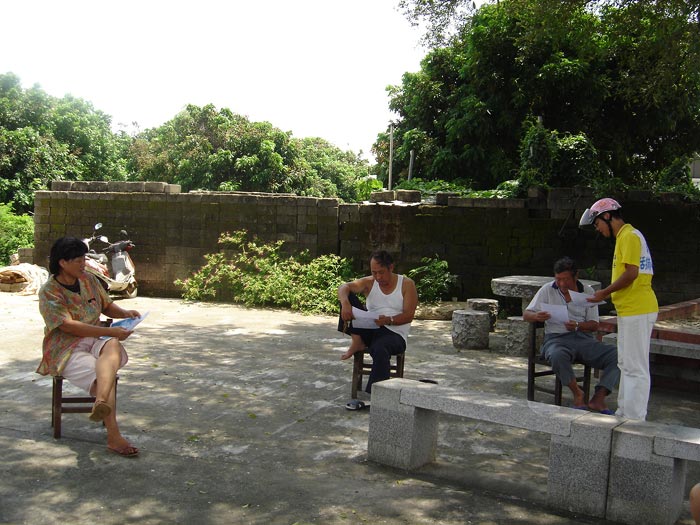 金门县民林先生跟着车队很久,舍不得离开,他说:“金门这种活动是很难得看到的,法轮功学员的勇气我非常佩服,我支持你们。我老婆是大陆人,她家以前是黑五类,爷爷的家产全部被共产党抢走,从小吃很多苦,觉的活在大陆很没希望,一心向往自由富足的台湾,经人介绍终于嫁过来金门,从此有了幸福的生活。” 金门县民吕先生:“我们金门人很纯朴善良,要宣传让金门人知道(真相),不要受到(中共)欺骗。这种迫害法轮功学员、活摘器官赚钱的事情是非常恶毒的,中共真的很不好。” 一位女士提到:中共很会赚台湾人的钱,盖一堆房子拉我们金门人去买。有的金门人贪图免费招待的小利,有的被骗也不敢吭声。金门人去大陆做移植手术和换假牙的也很多,大陆很黑暗,人权没保障,以前都不知道中共邪恶到活摘器官赚钱的事,很惊讶。 有很多民众表示这种大热天大家都躲在房子里吹冷气,谁还会出来办活动,看学员们个个神清气爽,体力过人,很羡慕,觉的法轮功一定是很好的功法,听了学员的修炼心得后,很想学炼。   马山观测站前合影 |