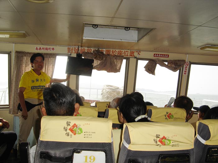 当车队来到两岸距离最近的马山观测站,台湾法轮大法学会秘书长洪吉弘也点出中国的问题所在。他表示:“大家应该清楚中共这个暴政,如果没有中国共产党,我们中国大陆将来会更好。” 下午车队搭船到离金门15分船程的离岛──小金门游街。学员拿扩音器广播,民众纷纷出来接传单,有的主动前来了解。知道真相的民众没有一个不谴责中共的暴行,并期望迫害不要再继续。 |