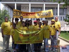 活动中,就连小弟子们都顶着烈日,不知疲倦的向过往行人派发真相资料,孩子们用一颗纯真的心感动了世人。一位行人说:“从孩子那里知道事情的真相,简直太不寻常了,现代社会里多一些这样的孩子就好了。” 一次,一些人在远处看到横幅上的字,走过来说:“怎么回事儿?不是说现在的中国发展很快,老百姓生活得非常好吗?”读了真相资料,又听了学员的详细讲解,他们马上改变了看法。一位女士一边签字一边说:“邪恶中共历史上一直都在迫害人民。”一位老者感叹的说:“共产主义把人们带进了死胡同。”