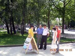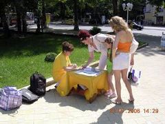 | 【明慧网二零零六年九月十六日】摩尔多瓦(Mordova)共和国,位于欧洲中部,西邻罗马尼亚,其余三面都和乌克兰接壤。这里百分之六十四的人口是摩尔多瓦族,其余为乌克兰族和俄罗斯族。国土面积为三万三千七百平方公里,人口为四百三十四万一千。摩尔多瓦共和国曾是前苏联的一个加盟共和国。 法轮大法从二零零三年开始在摩尔多瓦共和国洪传,这里的法轮功学员虽然得法比较晚,修炼时间不长,但是他们在认真修炼、身心升华的同时,与世界其它国家的法轮功学员一样,努力的向人们讲真相,揭露中共对法轮功修炼者的迫害。二零零六年,他们在首都基什耐乌(Kishinev)举行了多次活动,揭露中共迫害法轮功的罪恶,特别是中共活摘法轮功学员器官牟利的反人类罪行。下面是他们活动的部份图片。  摩尔多瓦法轮功学员们 |  被迫害真相震惊的摩尔多瓦人 |
