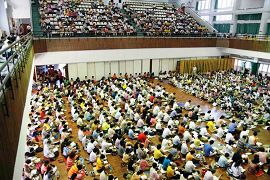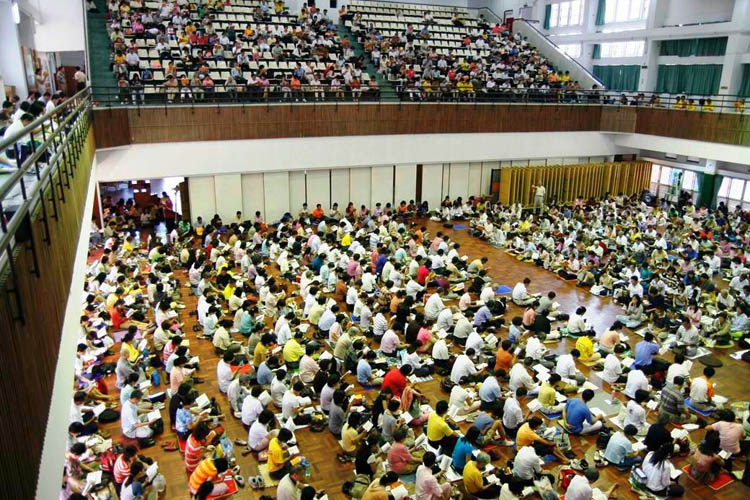 【明慧网二零零六年九月二十六日】全台湾讲真相小组于二零零六年九月二十四日在台湾台中县草屯青年活动中心召开一日广传·九·评*促三:退.交流会暨打电话讲真相交流会,约一千二百多人参加。远至宜兰花东地区的法轮功学员不辞车舟之劳纷纷前来,由各小组及学员汇报讲真相修炼心得体会,交流会上发言踊跃,多位学员精彩心得分享,比学比修,感染很多在场的学员,形成一个整体,汇入讲真相的行列。  在草屯青年活动中心集体学法及讲真相交流 |