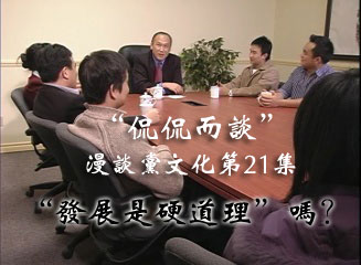 注:DVD格式的MPG-2文件,适用于DVD机和新式VCD机。如果要刻录能在老式VCD机上播放的标准VCD,需要用MPG-1文件。如果你需要其它格式的MPG文件,可使用TMPGEnc工具进行格式转换,下载TMPGEnc工具及说明方菲:各位观众,大家好。欢迎收看「漫谈党文化」节目,很高兴又和您见面了。 金然:我们这回要谈谈党文化中的一个现象叫做「发展是硬道理」吗?我们还是先看一个场景。 ---------------------------------------------------- 主持人:下面请我们的市委陈书记来给大家讲话。 陈书记:最近下面有些说法,搞得人心不稳的,搞些什么小动作。我给你们透个底、只要经济上搞上去、成绩摊的出,百姓不闹事,我看在经济上搞一些特殊,在生活上出一些小问题,我陈书记是会保的。 有什么了不起的?什么二奶、三奶、小蜜啊,谁没有?!我看是小题大做,别有用心,还是那句话「发展是硬道理」,你们记住我的这一点,永远不会错。 ---------------------------------------------------- 方菲:刚才场景中谈到这个「发展是硬道理」,我想很多中国大陆的人,可能都非常熟悉。 金然:而且认可。 方菲:对。横河先生,我想请你先谈一谈这个「发展是硬道理」,这个口号、它是怎么提出来的? 横河:「发展是硬道理」这个口号是1992年邓小平南巡的时候提出来的。那么当时的背景是在「六四」以后,中共的意识形态基本上是破产了。 那么在这之前是用意识形态作为其合法性的,所以它又要寻找新的合法性基础,既然在精神领域上不行了,所以就转而到物质领域里面去找。这个就是92年提出的这个「发展是硬道理」的背景。 金然:中国其实这个社会在文革之后有很大的动荡,老百姓一直在过苦日子,那在这个之后、你又提出这样的口号,可能很多人都会很自然的接受,因为大家都想能够稳定,日子能过得好一些,是不是这样? 横河:这个口号听上去,本身你一下子还听不出特别大的问题,但是它是领导人讲的一句话,后面就没有下文了。所以这并不是一个可执行的政策。在具体执行上这个「发展是硬道理」成了有权有势的这些人,掠夺财富、为个人谋取最大利益的一个理论基础。在另外一方面它又成了剥夺人民信仰自由,精神追求和民主自由最大的一个借口。 方菲:您为什么要说这个口号,是权富、权贵阶层追求这个财富最大的一个理论基础? 横河:是这样的,特别改革开放以后,有权有势的人掠夺了大量国家的财富,那么它的手段,主要有两个。第一个,主要是早期这个“国有资产私有化”,那么它是以国企改造的名义进行的,那么这个私有化的当中,根据国内的权威人士估计,在90年代、每年流失的国有资产是八百到一千亿人民币,那么这个钱就有相当一部份,是通过国有资产私有化的过程落到了那些人私人的腰包里面去了,这是早期。 到了中后期主要是在房地产开发方面,那么通过拆迁、圈地、卖地,地方政府搞钱。那么这里也有一个数据,从2001年到2003年这三年时间之内,这个房地产发开发,地方政府的收入是九千一百亿,这就相当于差不多2005年国家预算的三分之一左右,那么有多少落到官员的腰包里面去呢? 中国没有一个统计数字。但是有一个房地产业内的一个估算,就是说它的贿赂成本,光是「批地」这一项就占到整个房地产、地价的百分之三十。那么这个贿赂成本就全部落到私人这里去了,也就是说在这九千一百亿里面,至少有三千亿是落到私人口袋里面去了。 那么国家监察局还有一个统计数字,有问题的高级官员,百分之八十和土地有关系的。那么国有财产私有化和房地产的开发,这两点都是以「发展是硬道理」这个理由在进行的。 金然:横河先生,你刚才在举的是在「发展是硬道理」的口号下,出现了两个腐败的例子。但是从表面上来看中国的经济确实也是在发展,而且很多老百姓也能感受到:我日子比以前好过了。难道不是这样吗? 横河:这就看怎么样去看“发展”了,因为中国在中共的领导下,所做的这个发展它是一种「杀鸡取卵」式的发展。 那么这里我可以举个例子,在内蒙古的草原上,当地引进的山羊远远超过了当地的土地能够承受的、草原能够承受的能力,所以很快的,山羊就把草全部都吃完了。 不仅把草吃完了、还把草的根都吃完了,然后山羊没有东西吃了,就互相吃对方的毛。为了防止山羊互相咬毛,这个牧民就把山羊穿上衣服,有个人就到内蒙古拍了很多照片,其中有一些照片就是山羊穿着衣服所拍的照片。 那么这个牧场的草、连草根吃完了以后,这个牧场就很快的沙化了。而且草原一旦沙化了以后就永远也不可能恢复了,其实中共它自己也认识到这一点,它并不是不知道。 在《人民网》上理论栏目里面有一个党课的内容,里面就说到了:很多人把「发展是硬道理」看成了「增长是硬道理」。那么其中就提到GDP--就是我们刚才说的「国民经济总产值」,GDP拜物教的这个迷雾笼罩了各级决策者,所以他把官员的政绩就体现在GDP的增长上面,干部考核也是以这个为中心,导致GDP的增长不计方式、不计代价。 方菲:郑义,就是一位作家。他前一阵子出了一本书叫做《中国生态环境崩溃报告》,里面举了很多例子,都是非常怵目惊心。 横河:另外,中共中央宣传部有个理论局,有一个研究文章里面提到什么呢?就是许多人把「发展是硬道理」理解为「经济增长是硬道理」。 那么以经济增长,经济指标来论英雄。追求一时经济增长