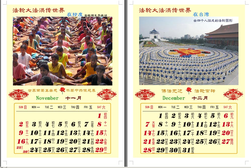 二零零八年年历:法轮大法洪传世界二零零八年年历:福