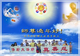 师父:弟子记住师父的话,作为一个大法弟子,在哪里弟子都会做好大法弟子该做的三件事,请师父放心。在新的一年中,弟子一定会勇猛精進,弥补不足,跟上正法進程,广传真相,救度众生。希望能早日无愧的面见师父。 奥斯汀大法弟子合十敬上 德国曼海姆大法弟子恭祝师尊新年好!