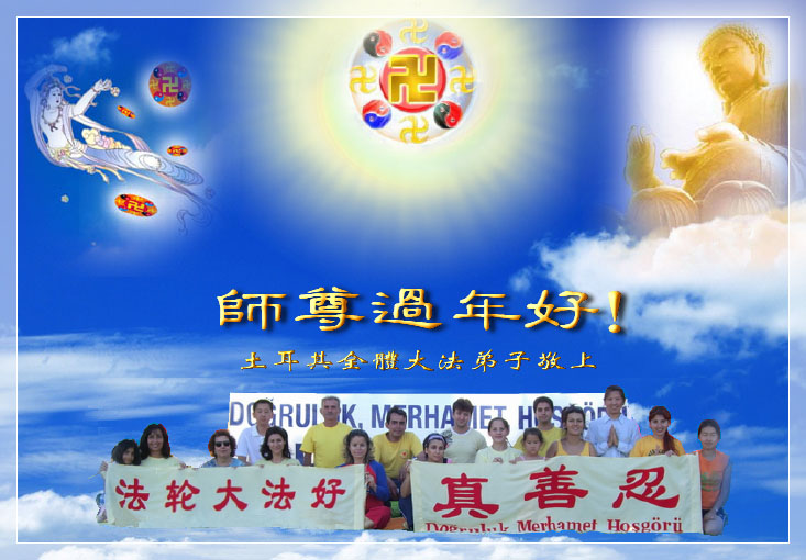 美国德州达拉斯全体大法弟子恭祝师尊新年好!录像(307KB)慈悲伟大的师尊: 您辛苦了!我们美国达拉斯全体大法弟子在这里恭祝师尊:新年好! 佛恩浩荡,洪恩寰宇;主佛慈悲,众生得救;弟子们无限感恩伟大师尊的慈悲呵护!在新的一年里,我们一定会静心学法、整体提高,在正法修炼的路上更加精進,做好三件事,助师正法,救度更多的众生,不辜负师尊的慈悲苦度,众生的期盼。 美国达拉斯全体大法弟子 叩拜! 二零零七年二月十六日 土耳其全体大法弟子恭祝慈悲伟大的师尊新年好!