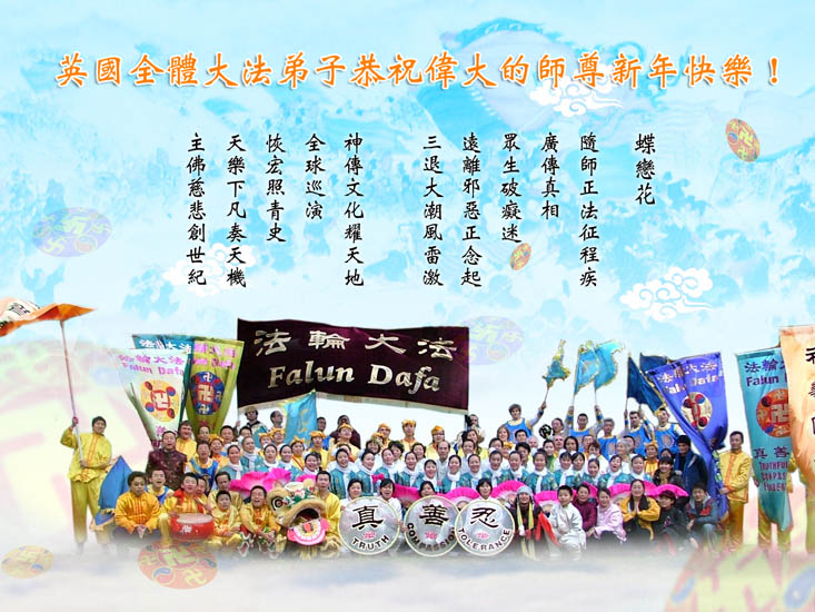| 【明慧网二零零七年二月十八日】 英国全体大法弟子恭祝伟大的师尊新年快乐! 澳门大法弟子祝慈悲伟大的师尊新年好! 澳洲悉尼大法弟子祝慈悲伟大的师尊新年好! 美国德州达拉斯全体大法弟子恭祝师尊新年好! 土耳其全体大法弟子恭祝慈悲伟大的师尊新年好! 马来西亚大法弟子恭祝慈悲伟大的师尊新年好! 美国纽约州长岛地区全体大法弟子恭祝慈悲伟大的师尊新年好! 泰国芭提亚全体大法弟子恭祝伟大的师尊新年快乐 澳洲大法弟子向师父问好 美国俄亥俄州大法弟子恭祝师尊新年快乐 奥地利全体大法弟子恭祝慈悲伟大的师尊新年好 北欧大法弟子恭祝师尊新年好! 澳大利亚大法弟子恭祝师尊新年快乐 香港全体大法弟子恭祝师尊新年快乐 挪威大法弟子祝师父新年快乐 美国德州大法弟子祝慈悲伟大的师尊新年快乐! 德国慕尼黑新学员祝师尊新年好! 荷兰北部大法弟子祝伟大的师尊新年好! 匈牙利大法弟子祝慈悲伟大的师尊新年快乐! 美国维吉尼亚大法弟子敬祝慈悲伟大的师父新年快乐! 日本福冈全体大法弟子敬祝慈悲伟大的师尊新年快乐! 俄勒冈大法弟子祝师尊新年快乐! 澳大利亚墨尔本大法弟子恭祝师父新年快乐! 多伦多大法弟子祝师父新年好! 日本大法弟子恭祝慈悲伟大的师尊过年好! 德州奥斯汀大法弟子恭祝慈悲伟大的师父过年好! 德国曼海姆大法弟子恭祝师尊新年好! 日本全体大法弟子向慈悲伟大的师尊拜年 印尼全体大法弟子祝慈悲伟大的师尊新年好! 比利时全体大法弟子向慈悲伟大的师尊拜年!恭祝师尊新年好! 澳洲全体大法弟子给慈悲伟大的师尊拜年! 美国科罗拉多大法弟子给慈悲伟大的师尊拜年! 全体芬兰大法弟子恭祝师尊新年好! 北加州全体大法弟子祝慈悲伟大的师父新年好! 日本广岛大法弟子恭祝师尊新春快乐! 美国密西根州、俄亥俄州特莱多市、加拿大温莎市全体大法弟子敬祝师尊新年快乐。 日本大法弟子向慈悲伟大的师尊拜年!恭祝师尊中国新年好! 美国密苏里州大法弟子给师尊拜年!恭祝师尊新年快乐! 秘鲁全体大法弟子祝师尊中国农历新年快乐! 英国全体大法弟子恭祝伟大的师尊新年快乐!