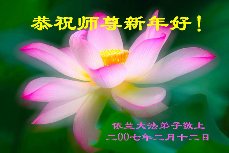 师父:新年好! 并向尊敬的师父致以崇高的敬意! 胜利油田孤岛大法弟子 二零零七年新年 大陆一学员向尊敬的师父拜年!