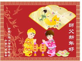 我家四人都修炼,祝师父过年好!我们一定做好师父教我们的三件事,圆满随师还。二零零七年二月八日 保定全体大法弟子祝伟大的师尊新年快乐!