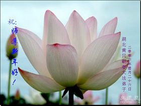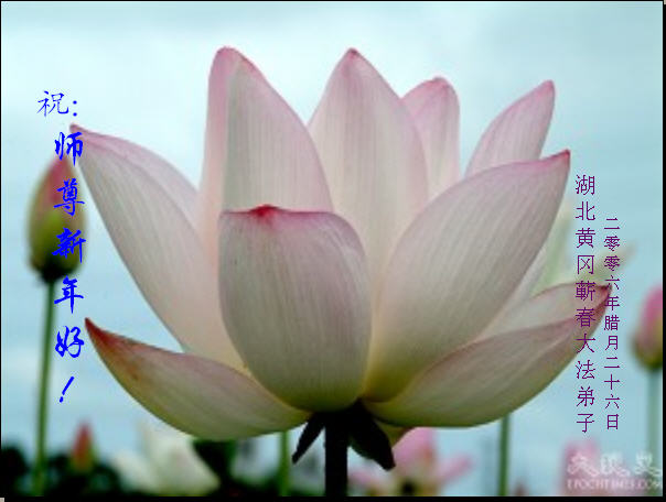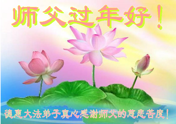 报师恩 法轮常转处处新, 正果累累报师恩。 莲花香飘万万里, 普天同庆迎新春。 做好“三件事”,结束迫害,越最后越精進。 大陆一名流离失所五年的大法弟子向慈悲伟大的师尊拜年:恭祝师父新年好!