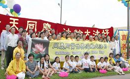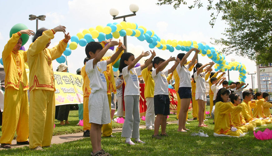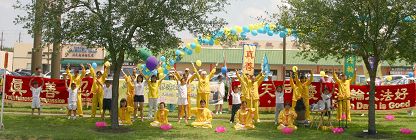 美国德州大法弟子庆祝世界法轮大法日有两天的活动,修炼心得交流会以及在休士顿中国城举办庆祝活动。 一、迎大法日 德州弟子心得交流,畅叙心声 为庆祝世界法轮大法日,来自奥斯汀(Austin)、达拉斯(Dallas)、圣安东尼(San Antonio)和一些其它城市的大法弟子,与休士顿学员一道,在休士顿罗玛达旅馆(Ramada Inn)举行心得交流会。 在修炼心得交流会之前,法轮功学员们在一起合照、吃生日蛋糕,齐声恭祝师尊生日快乐,弟子们永远感激和铭记师恩。 一些学员在修炼体会中谈到:学法的重要性,认为坚持学法、学好法,在证实法中,就能把项目做好。 一位西方学员谈到:当遇到魔难来时,想到对师父对大法是否正信正念,坚信大法,就能清除魔难,度过难关。 德州大法弟子们意识到心得交流很有必要,每个修炼者积极的参与,有一个精進的修炼环境,整体协调,整体才能升华。 二、休士顿中国城 节目多彩颂大法 二零零七年五月十三日星期天上午九点至下午一点,休士顿中国城顶好超市(Diho Hao Market Plaza)外、百利大道旁(Bellaire Blvd)的公共草坪上气球飞扬,各种横幅:“法轮大法”、“真、善、忍”、“法轮大法好”、“普天同庆世界大法日”格外醒目,法轮功学员在这里举行活动庆祝世界法轮大法日。 庆祝节目丰富多彩,有诗朗诵、有乐器演奏和歌唱,最主要的还是法轮功五套功法的演示。明慧学校小弟子也参加了功法的展示,他们还背《洪吟》、歌唱“法轮大法好”。 节日的气氛吸引行人驻足观看。一位老人满面笑容的跑来了,赶快拿出口袋的照像机,拍了“法轮功免费义务教功”的横幅,又将大法弟子正在表演的快乐情景拍下来了,最后,他还不忘记自己喜洋洋的站在“法轮大法好”的横幅旁,请法轮功学员帮他拍下这珍贵的时刻。他自己介绍说他一直是新唐人新年晚会的忠实观众,已连续四年观看过晚会的节目,今天,他也分享节日的快乐。其他路人也相继而来,成为节目的快乐观众。大法节日的来临,给中国人的另一个惊喜是,这个周末正式在休士顿开始发行中文《明慧周报(海外版)》,使华裔有更多机会了解法轮功真相。 多彩多姿的表演,加之路上川流不息的车辆,构成一副美丽的图画,成为休士顿市中心一道独特的风景线,令市民难以忘怀。 大法弟子庆祝世界法轮大法日合影
